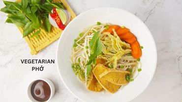 Tofu · Enoki Mushroom · Shiitake Mushroom · Bean Sprout · Fresh Vietnamese Herbs · Rice Noodles Aromatic Vegetable Broth