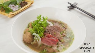 Braised Australian Beef Shin · Herb-Infused Pork and Beef Balls · Bean Sprout · Fresh Vietnamese Herbs · Rice Noodles · Aromatic Marrow Bone Broth